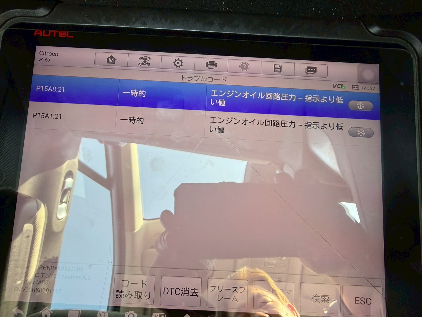 まずは診断機(AUTEL)を接続してエラーコードを確認します。